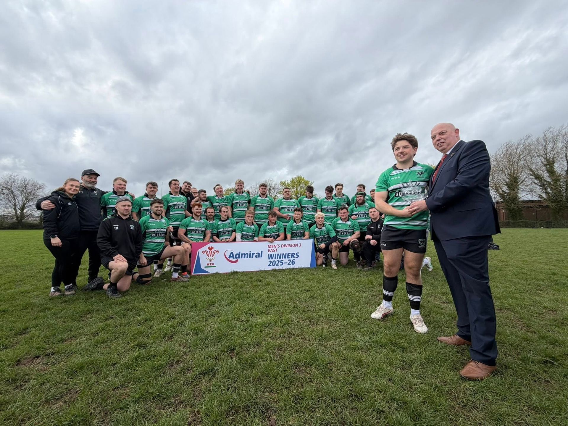 Players current and past all joined in the celebration as WRU District Rep Roy Wilkinson handed the league trophy to Joe Winfield to prompt a long night of well-deserved celebration.